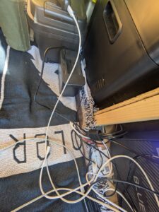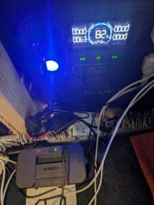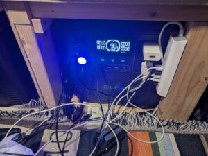 今回は「走行中は車のシガーソケットから内蔵バッテリーを充電」「停車中はバッテリー駆動」「足りない分をAORAで補給」という電力の三段活用を実践。