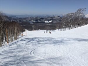 板が雪面に食いついてくれて、ターン中の遠心力と安定感を感じました。