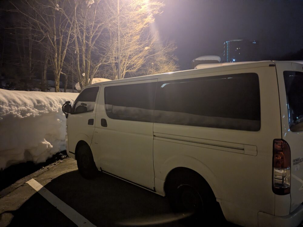 滑り終えてラッキー号に戻り温泉に入り、次の目的場所に移動をします。