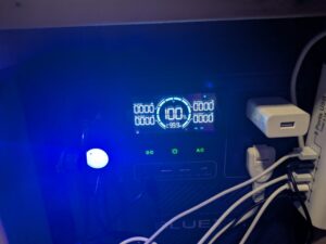 今回は「走行中は車のシガーソケットから内蔵バッテリーを充電」「停車中はバッテリー駆動」「足りない分をAORAで補給」という電力の三段活用を実践。
